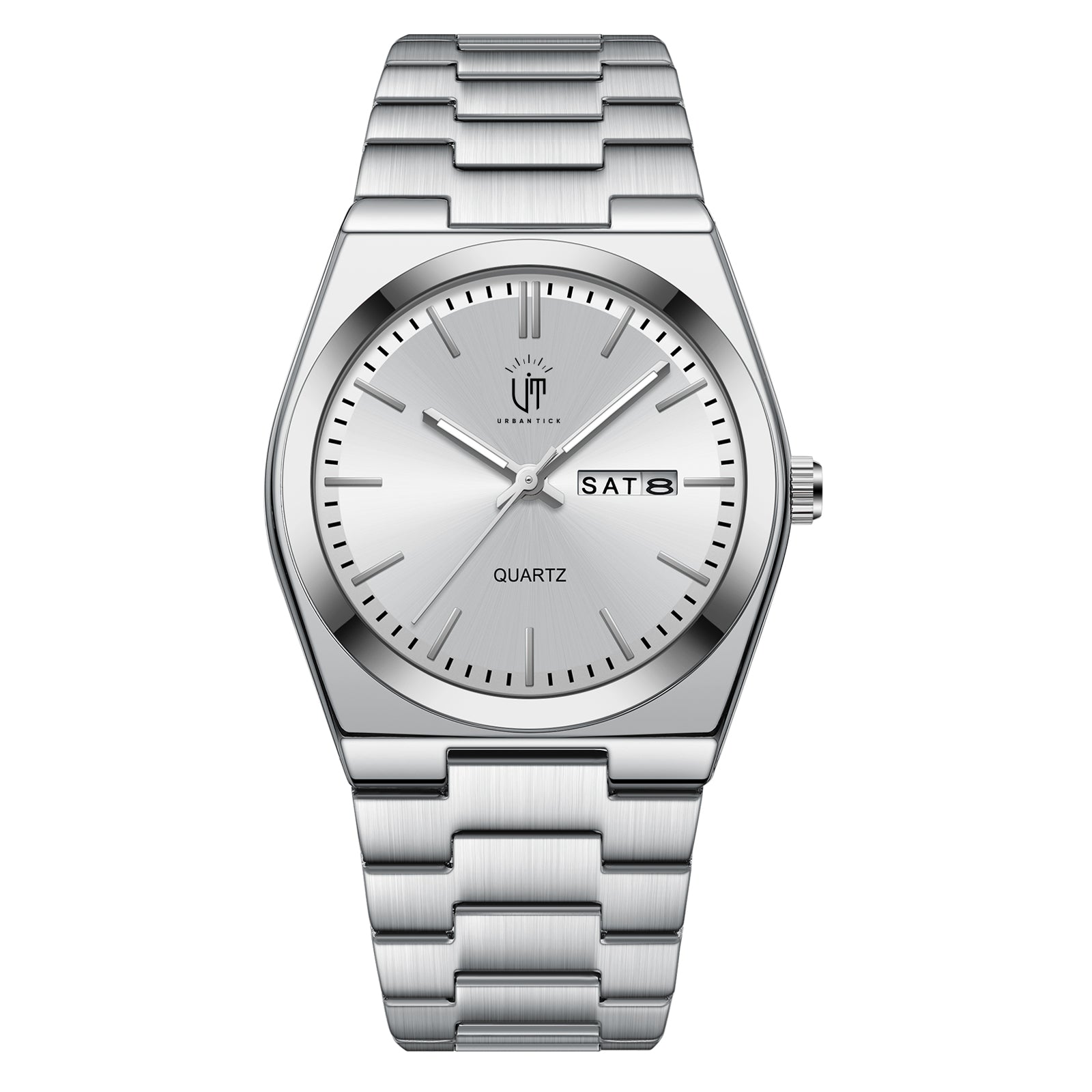Exude refined confidence with the UrbanTick Imperium, a masterful blend of sophistication and precision. Designed with a clean angular case and a polished stainless-steel bracelet, this 41mm timepiece stands out effortlessly — from boardroom meetings to evening outings.